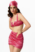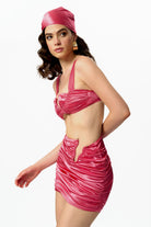 Göz alıcı İtalyan saten kumaştan üretilmiştir. Deniz suyuna dayanıklı gold aksesuarıyla şıklık kazanır. Ön ve arka kısmındaki drapelerle zarif bir görünüm sunar. Tüm bikini takımları ile uyumlu olacak şekilde tasarlanmıştır.