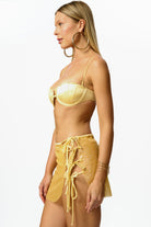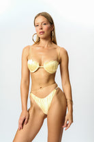 This sun-kissed design is crafted from premium Italian satin. Its underwire and thin, adjustable straps provide a supportive and comfortable fit. The interior is fully lined for a smooth, seamless feel.